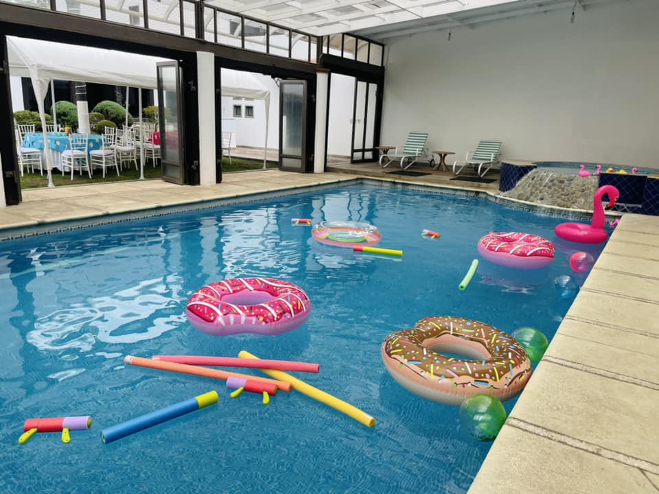 Por el clima no te preocupes, la alberca es techada y climatizada